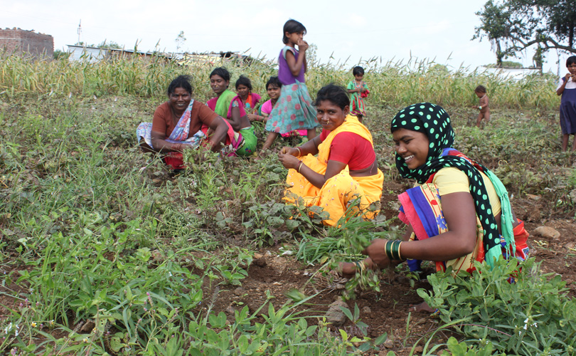 (Top photo of tribals in drought-affected Beed district scratching for mungbeans. Photo by Vivian Fernandes)