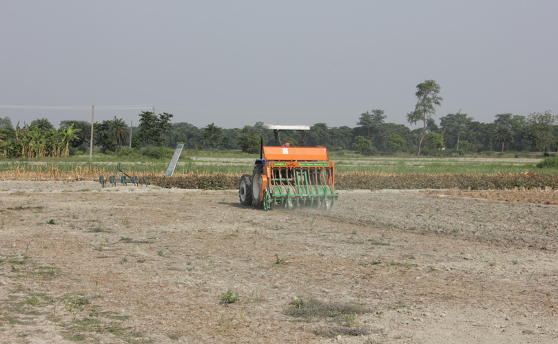 (Top photo: Direct seeding of rice at the Borlaug Institute for South Asia, Pusa, on 3 June, 2015. Photo by Vivian Fernandes)