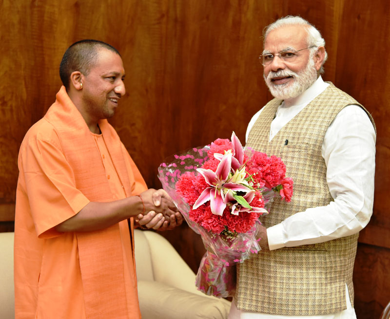 (Uttar Pradesh Chief Minister Yogi Adityanath calling on the Prime Minister on 21 March. PIB photo)